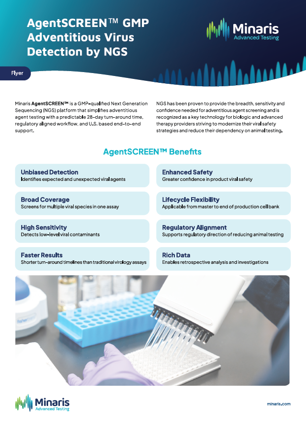 With more than 40 years of biosafety expertise, Minaris provides GMP-compliant sterility, mycoplasma, endotoxin, adventitious agent and replication-competent virus testing. Our specialized focus on CGT ensures risk-based strategies tailored to viral vectors, plasmids and packaging systems. Results are audit-ready and regulator-accepted, supporting IND, IMPD and BLA submissions worldwide.
