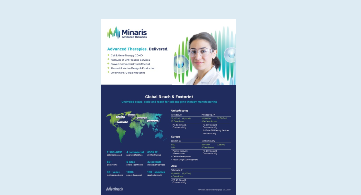 Minaris operates five sites across the U.S., Europe and Asia, encompassing GMP manufacturing, advanced testing and R&D facilities.