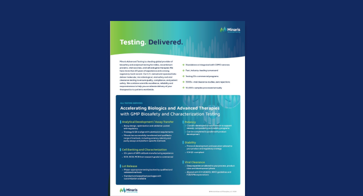 Minaris Advanced Therapies is dedicated to helping innovators in cell and gene therapy succeed. Whether you are in early-stage development or preparing for commercial launch, our end-to-end expertise, global reach and commitment to quality make us the ideal partner for cell and gene therapy manufacturing and GMP biosafety and analytical testing of all biologics.